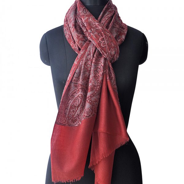 Floral Maroon Pure Pashmina PP00096 shawl is made by professional weavers. It is made from finest quality 100% Pure Pashmina material which is remarkably soft and light.
